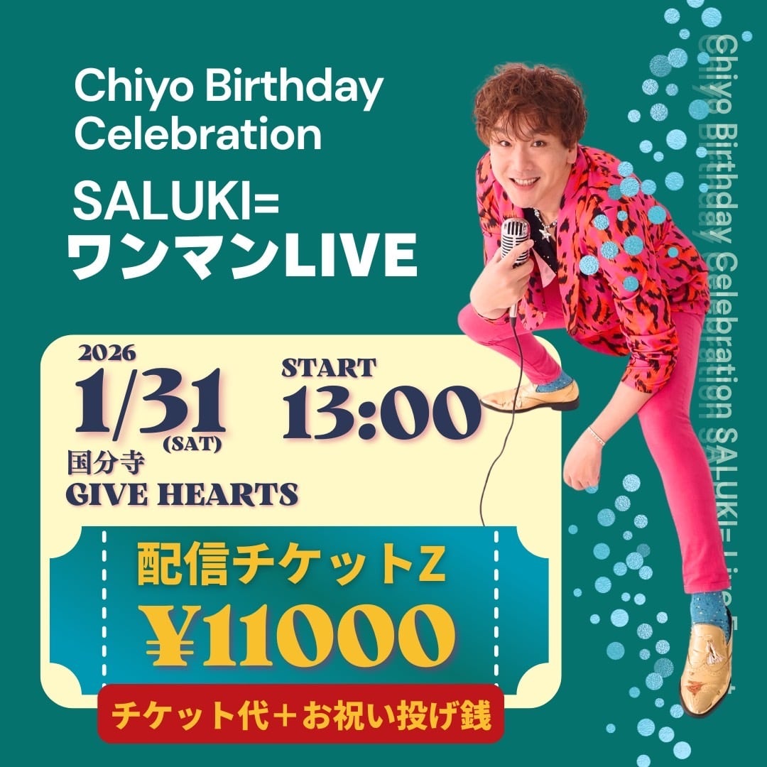 2026/1/31(土)に開催される「CHIYO 49th BIRTHDAY記念サルーキ=ワンマンライブ」の配信チケットです。